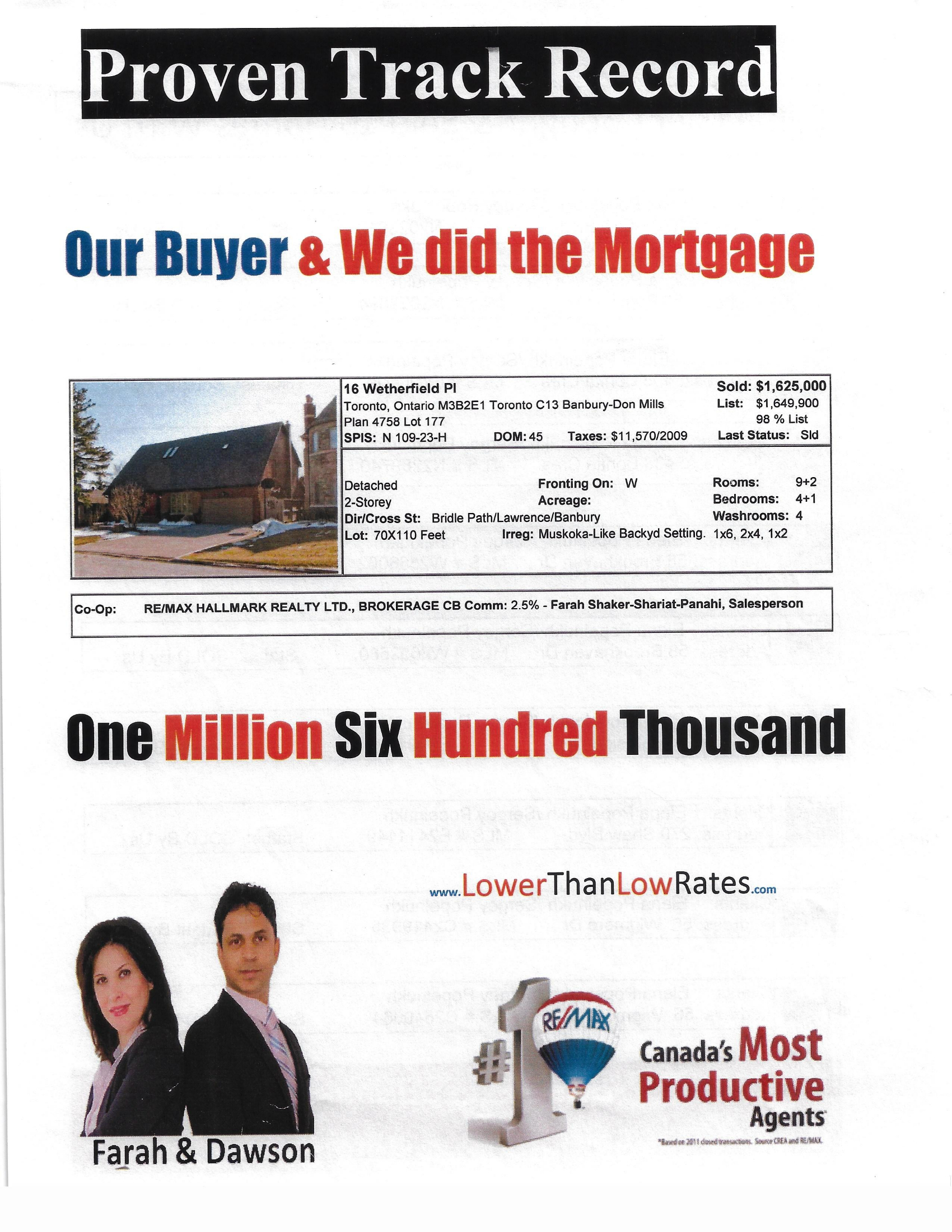 But it SOLD by The Farah and Dawson Team of RE?MAX Hallmark. I strongly advise all sellers to try their services